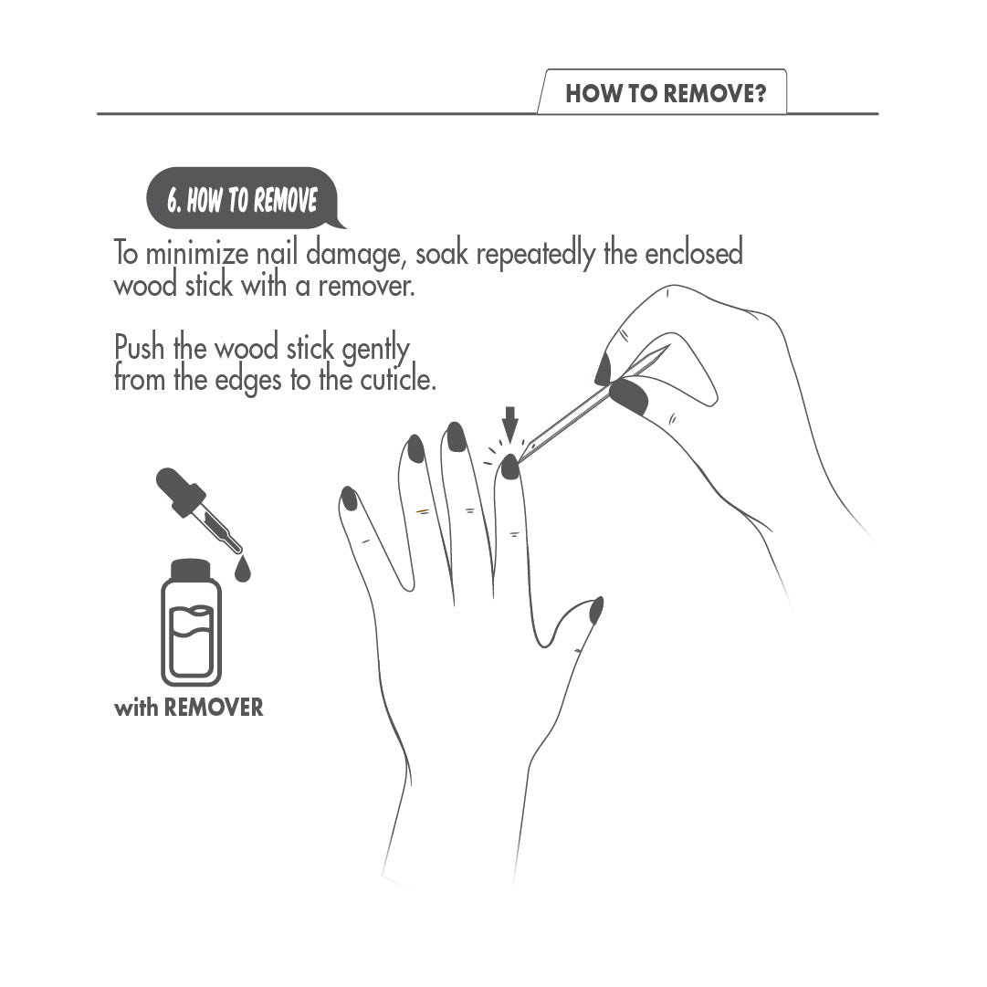 ❌ Do not forcefully rip them off, as this may damage your nails!