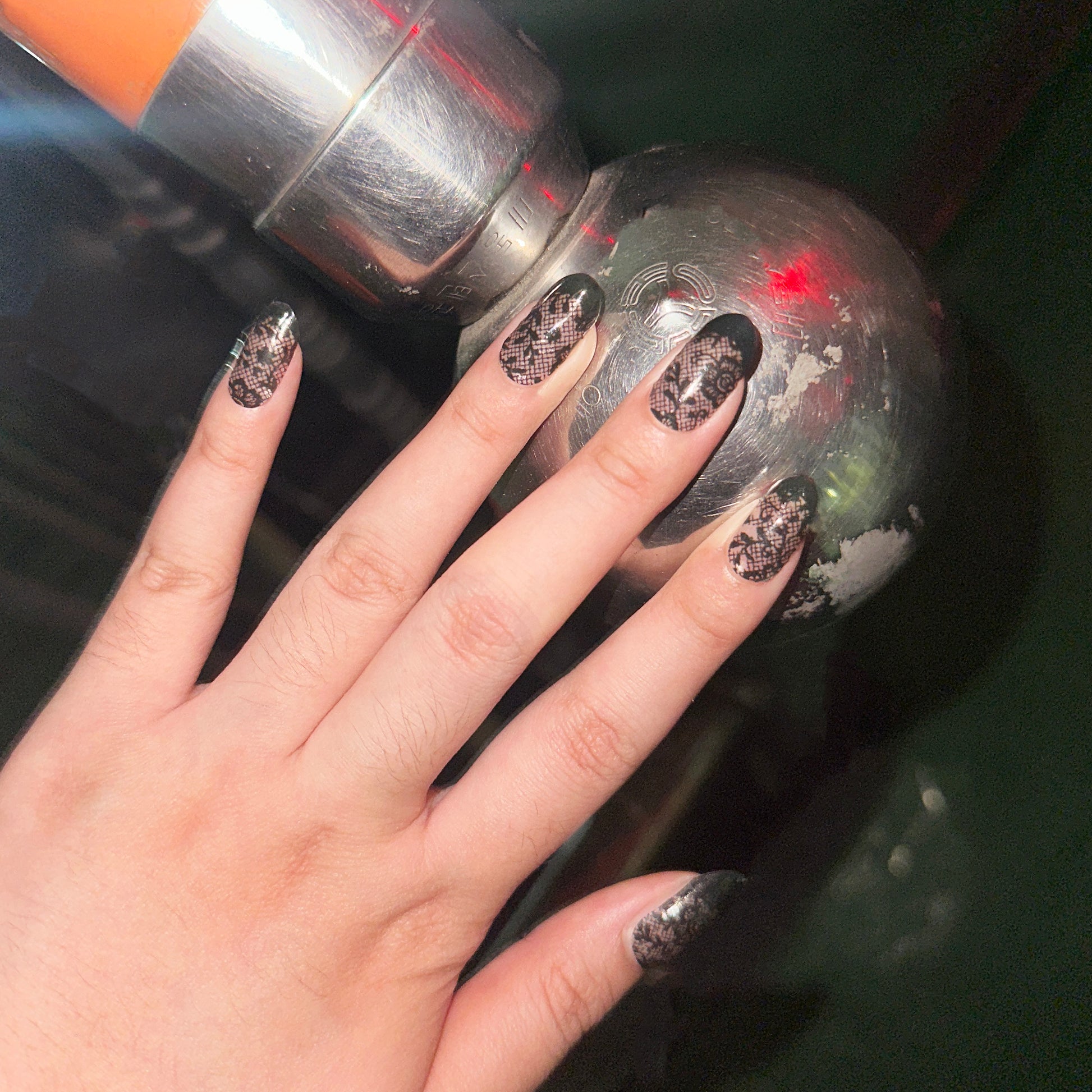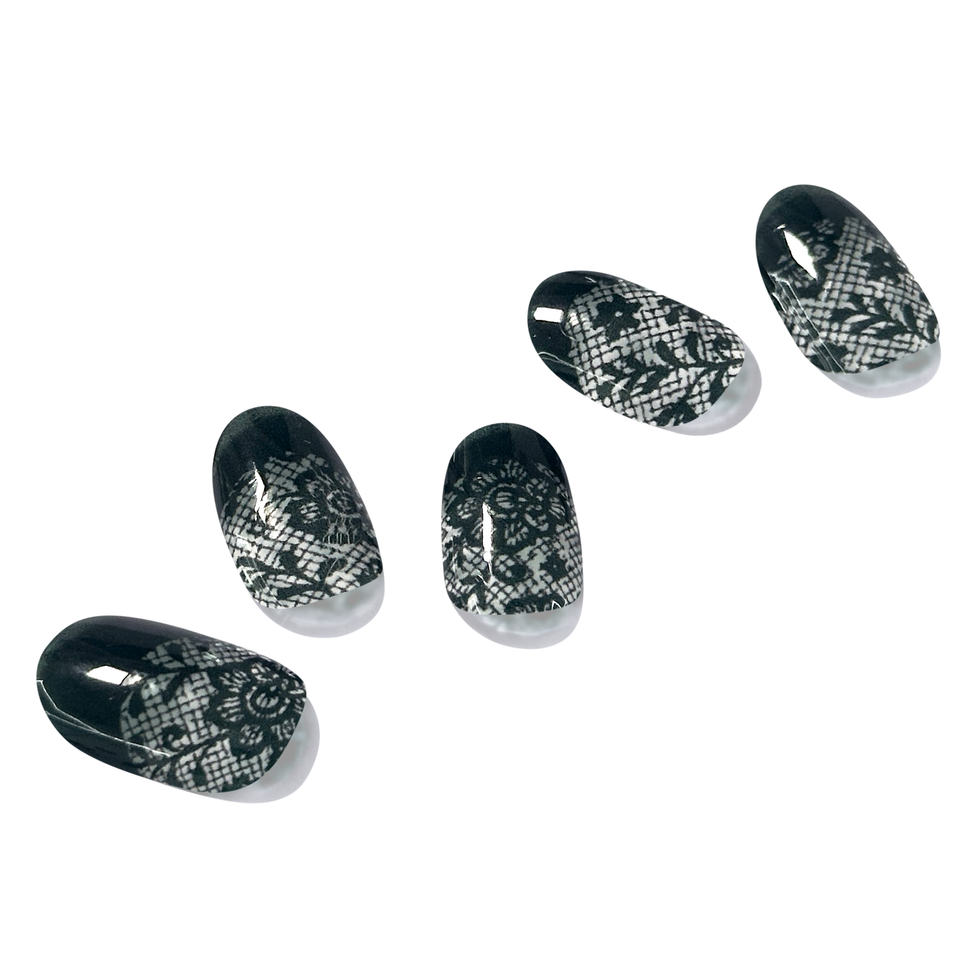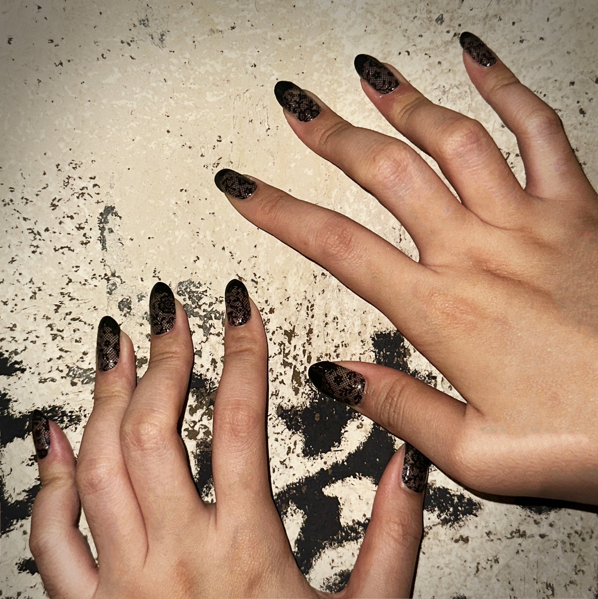 Inspired by gothic elegance, this set features intricate black lace details layered over a deep, moody base. It’s sultry yet sophisticated, giving your manicure that hauntingly beautiful vibe perfect for spooky season.
