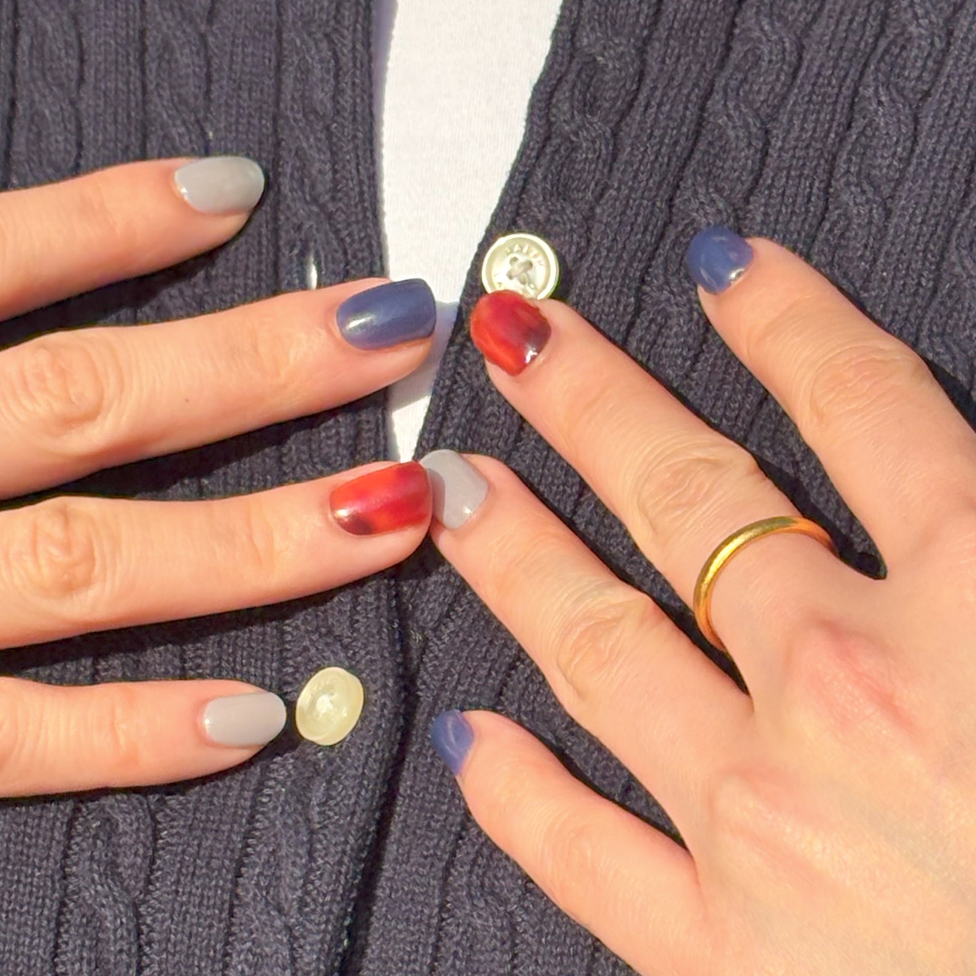 선명한 블루와 부드럽게 퍼지는 엠버 마블이 어우러진 'Horizon'은 손끝에 자연스러운 깊이와 강렬한 인상을 더해줍니다.