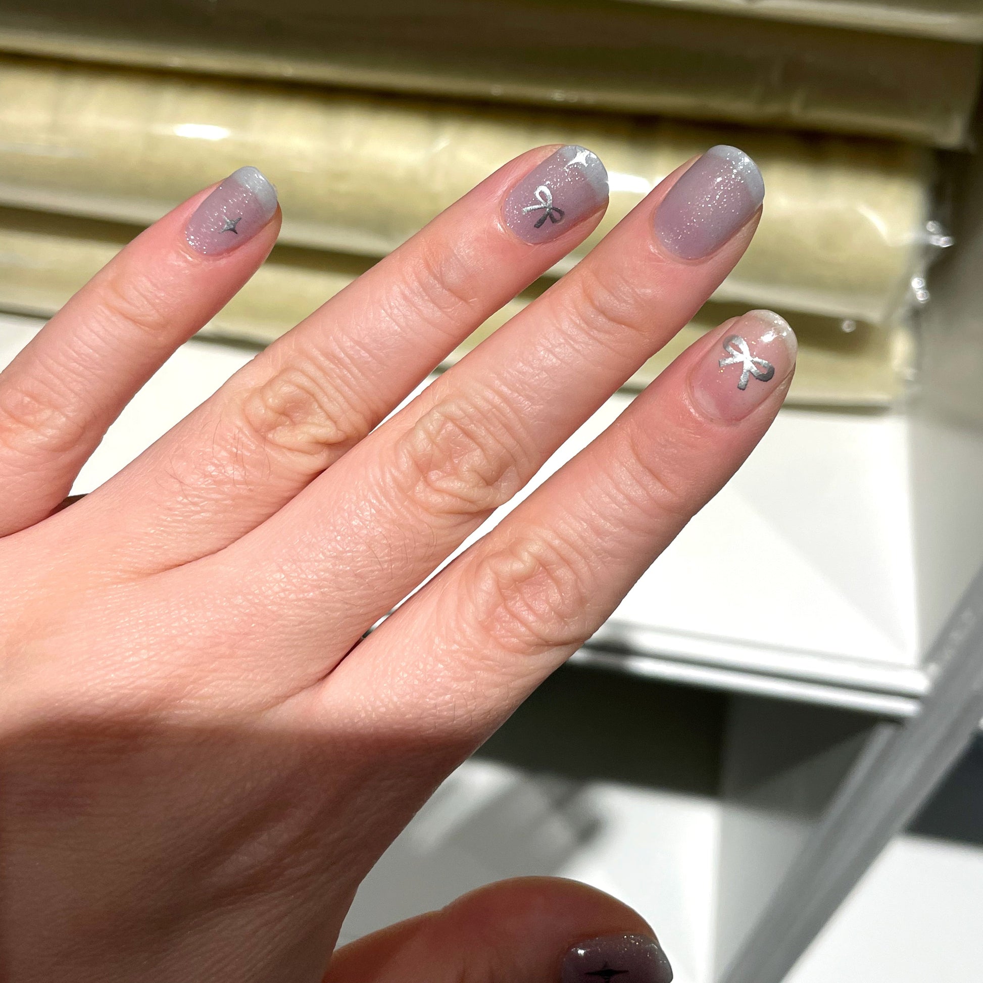 Imagine a cozy winter painted in soft blue and sparkling ice. And tie an adorable ribbon on your fingertips.