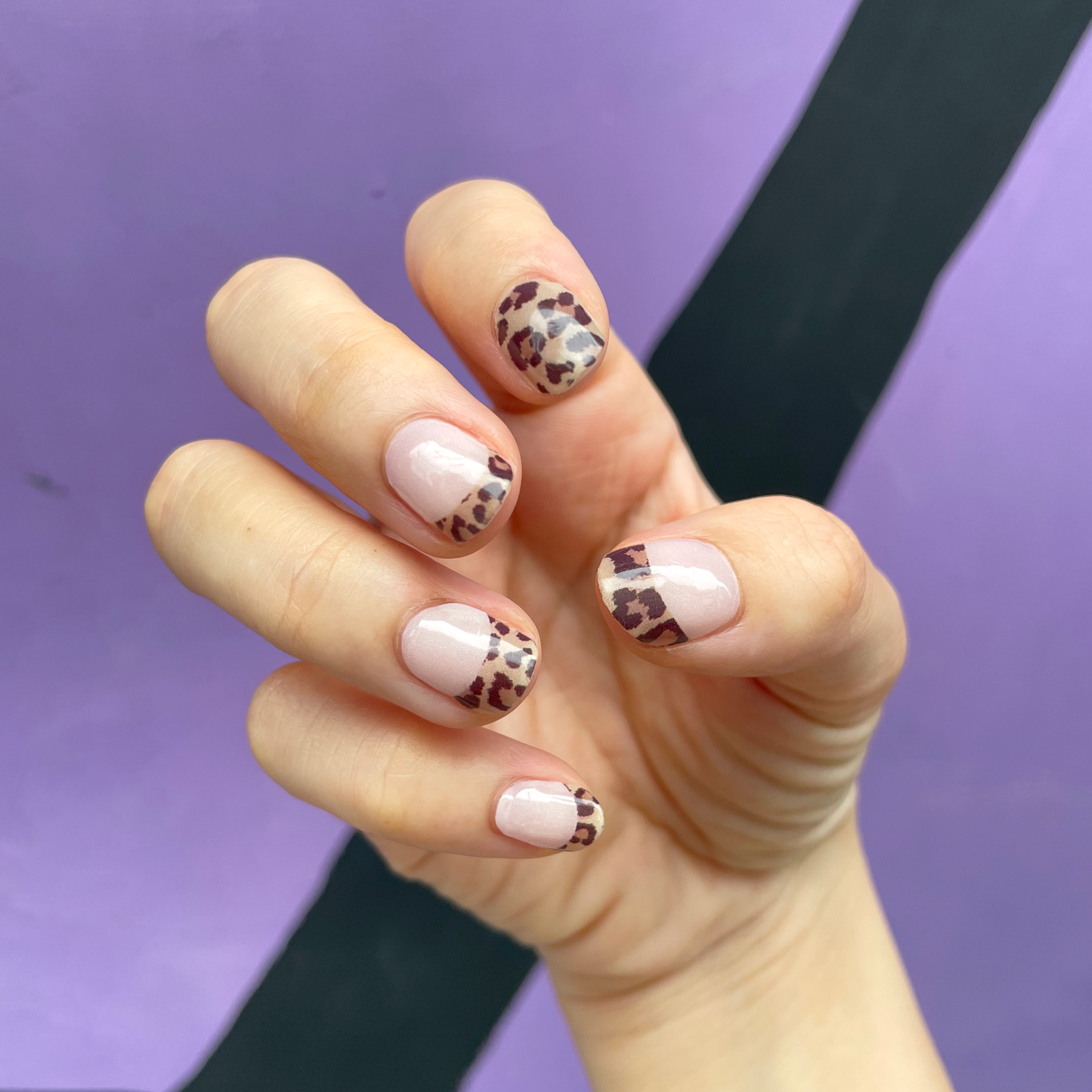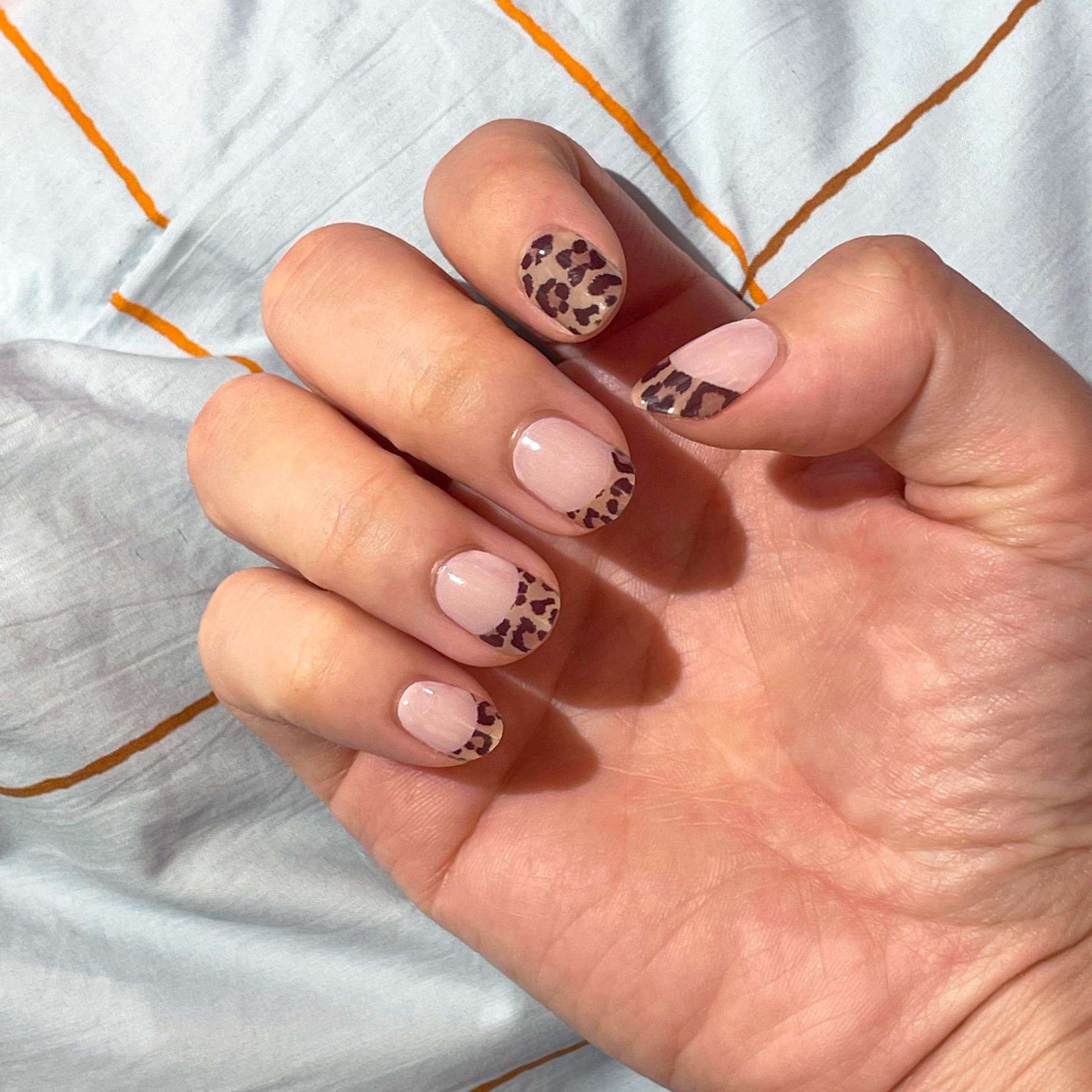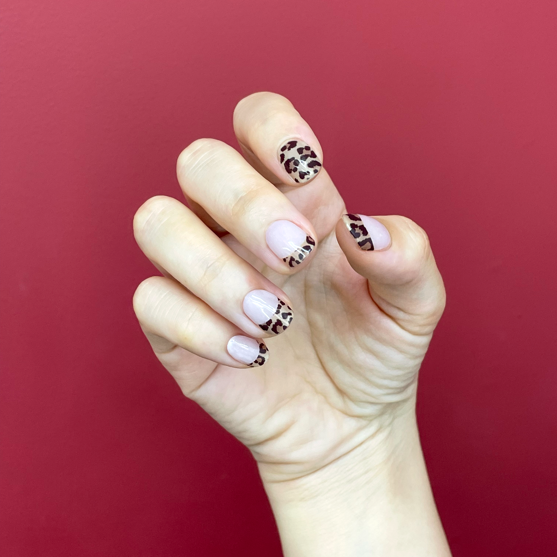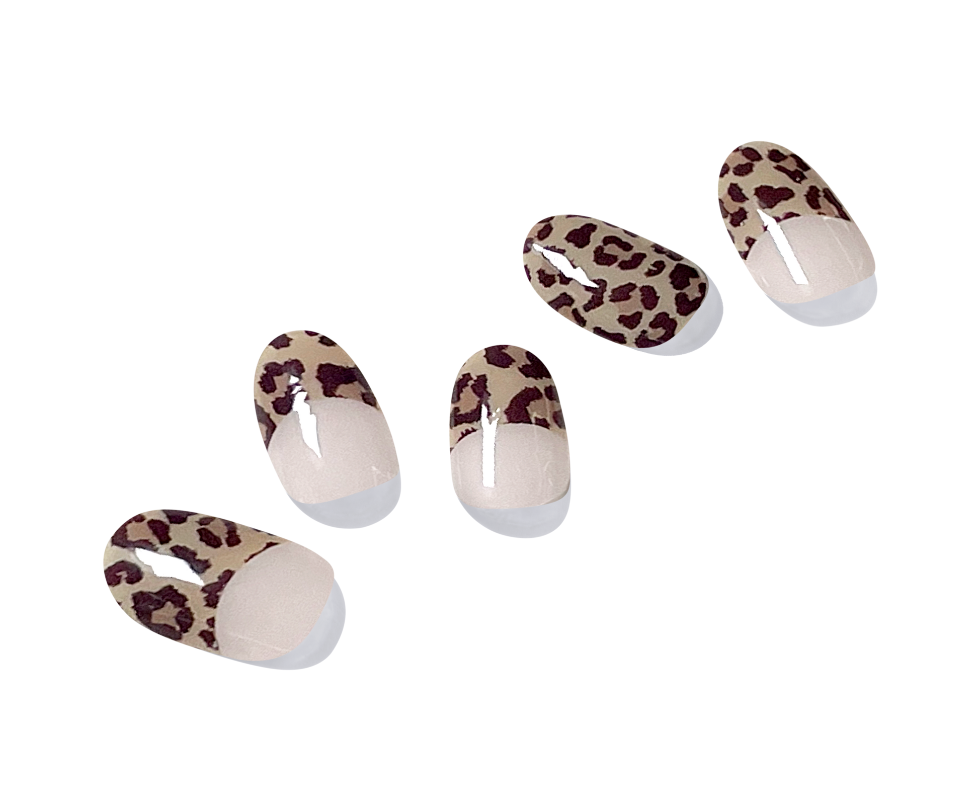 Classic French tips take a walk on the wild side with a fierce cheetah twist. Bold, stylish, and a little untamed—perfect for when you're feeling classy and sassy.